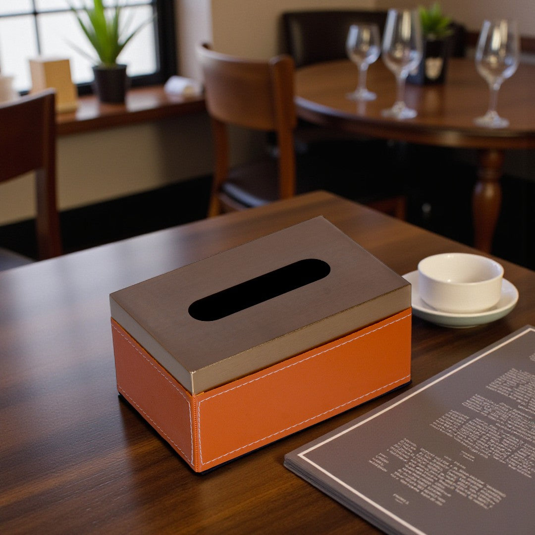 This stylish tissue box holder adds a modern and elegant touch to your home or office. Its leather-finish design makes it both practical and decorative.
