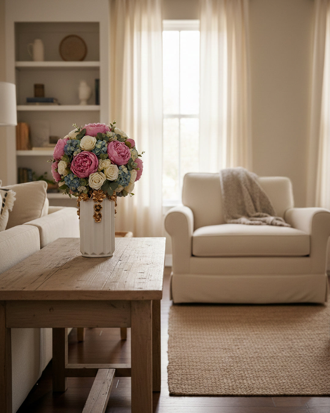 Luxury White Vase with Gold Floral Embellishment