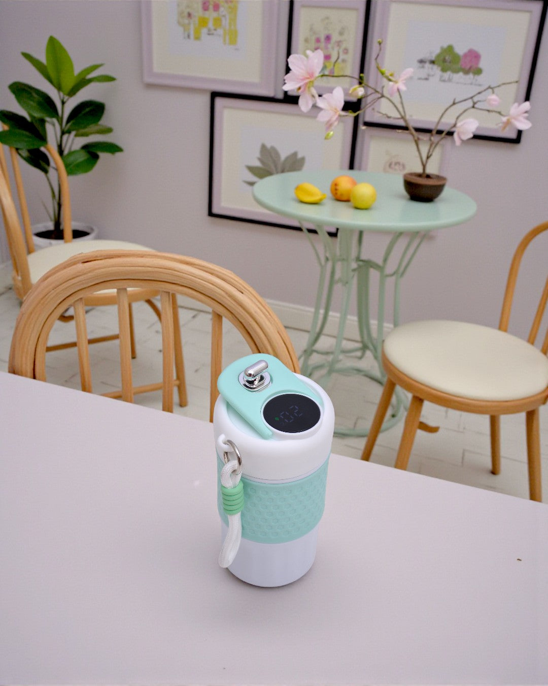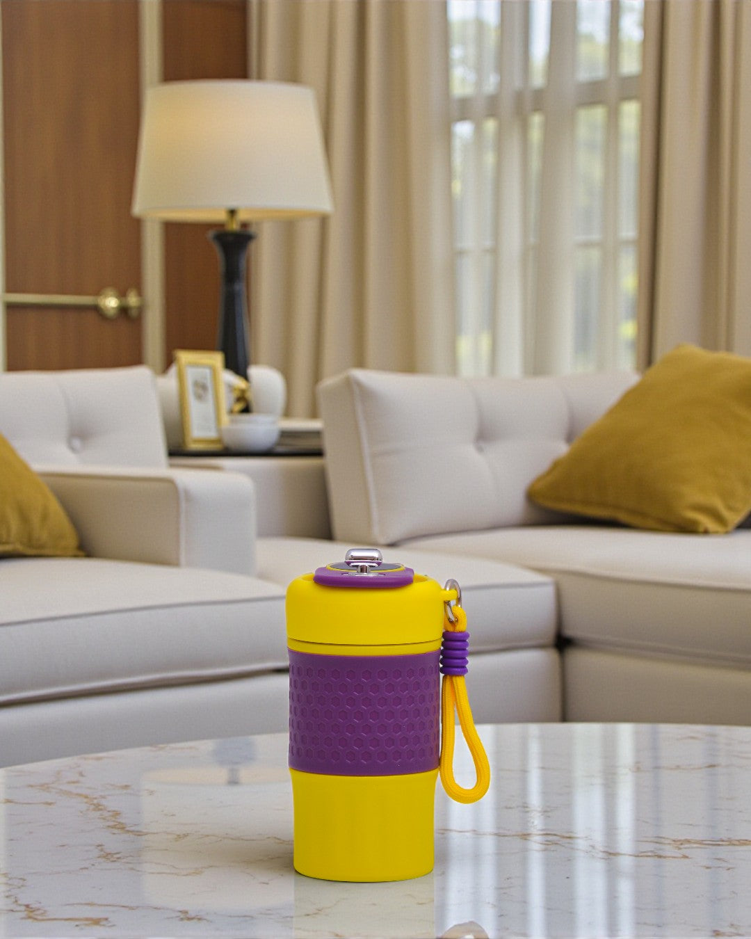Compact Insulated Travel Mug with Wrist Strap Lid
