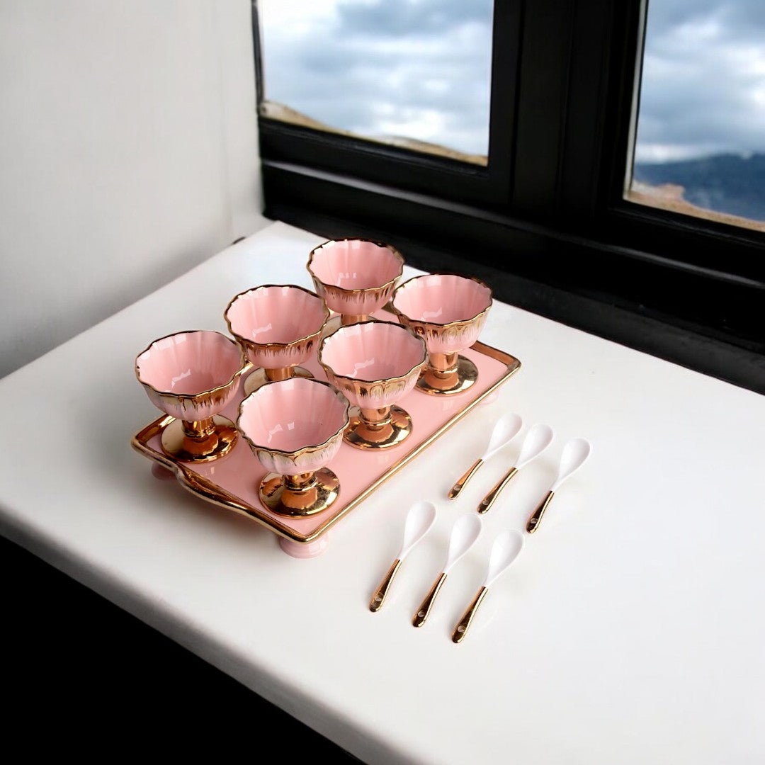 Porcelain Ice Cream Set of 6 Spoon and Tray
