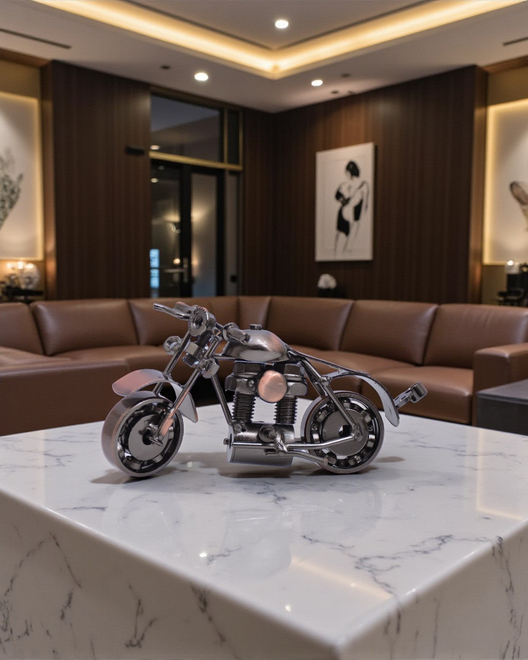 Stylish vintage metal motorcycle model, ideal for adding a bold and classy statement to your space.