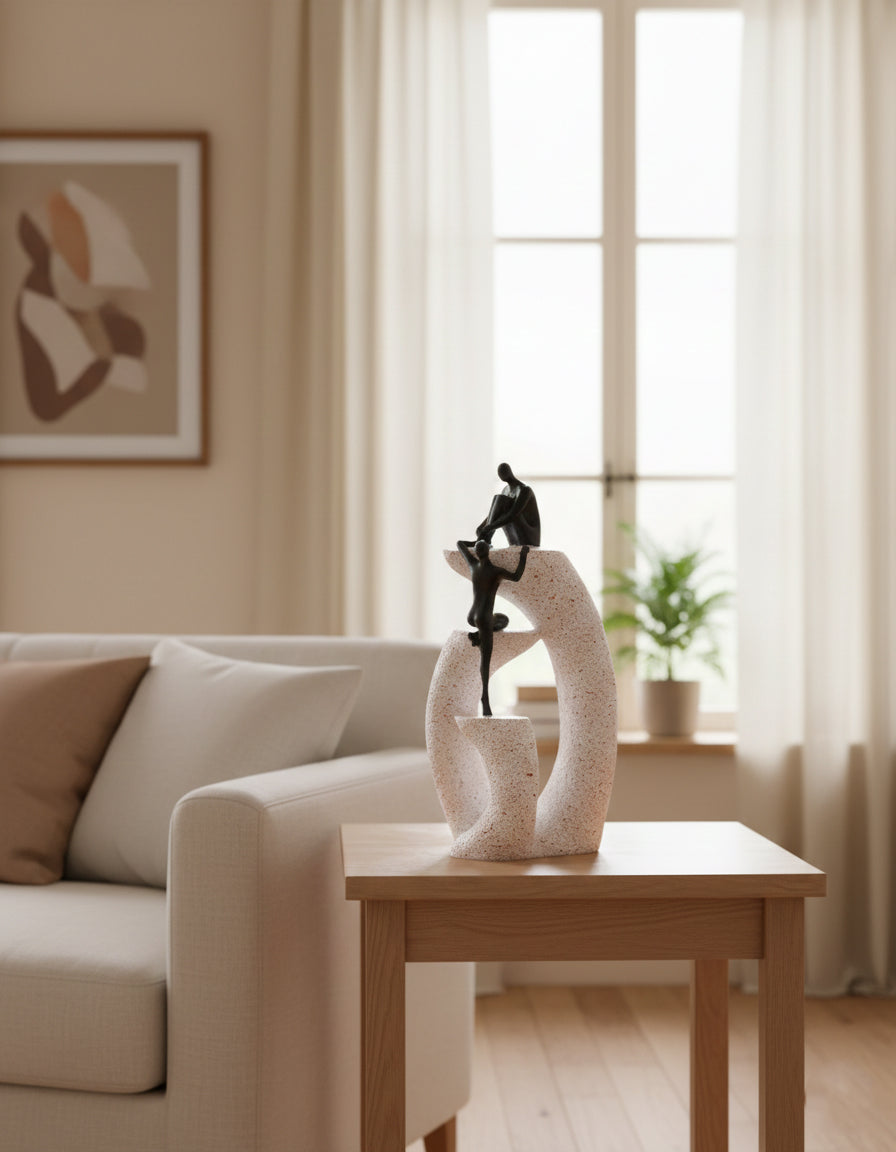 A modern abstract sculpture collection featuring artistic human figures in three unique statement designs.
