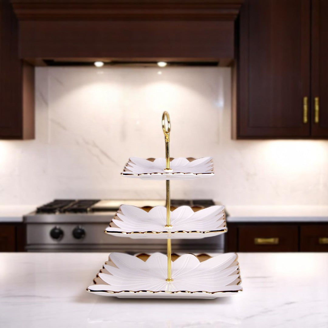 White & Golden Serving Dish Square